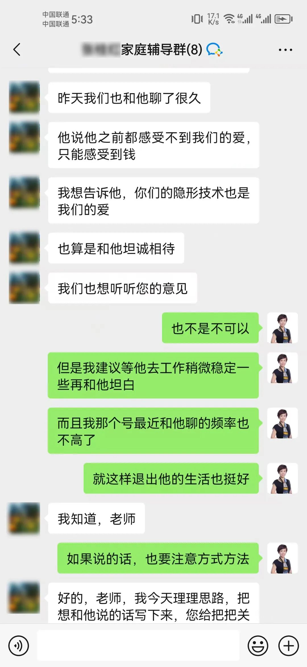 同时也和他分享我自己的成长经历,和父母的交流方式,并引导他去了解父母的工作及想法。