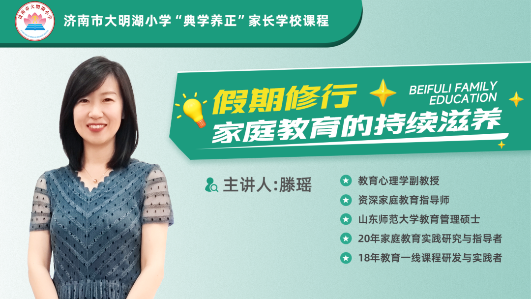 此次直播,倍赋力家庭教育研究院院长滕瑶担任主讲嘉宾,为全校家长带来了以“假期修行:家庭教育的持续滋养”为主题的分享。滕瑶院长指出,假期不应成为“第三学期”,而是“第一生活课堂”。