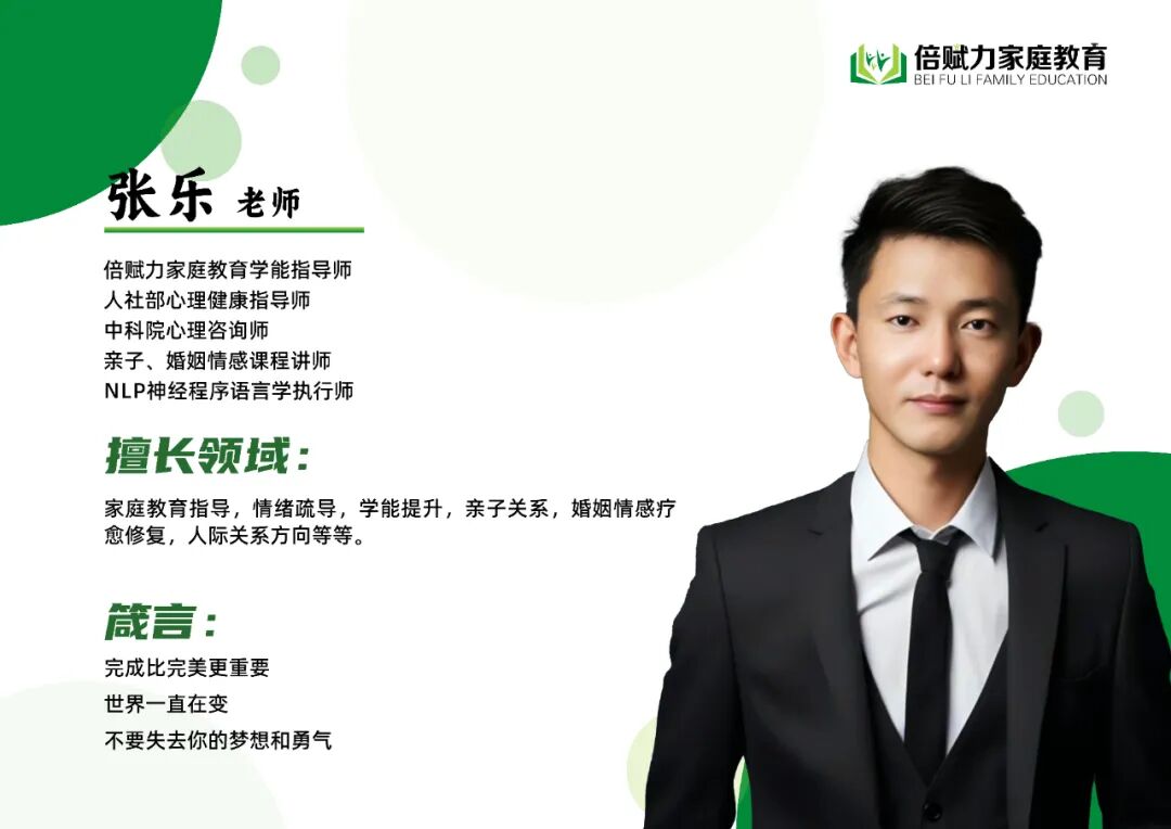 大家好,我是倍赋力家庭教育的学能指导师、中科院心理咨询师、人社部心理健康指导老师、中国心理协会家庭教育指导师张乐。