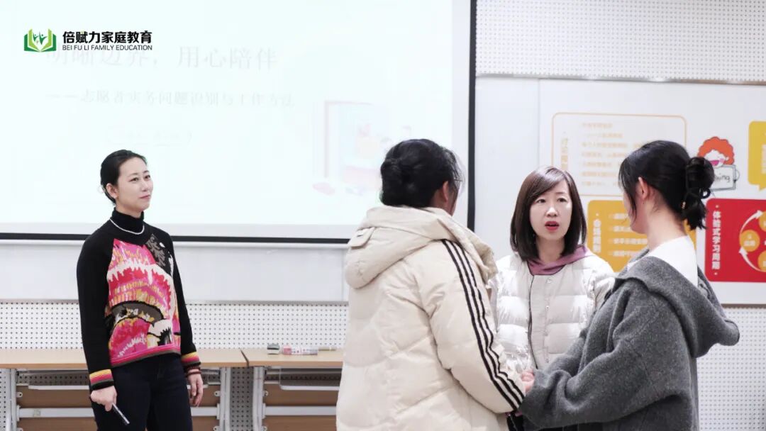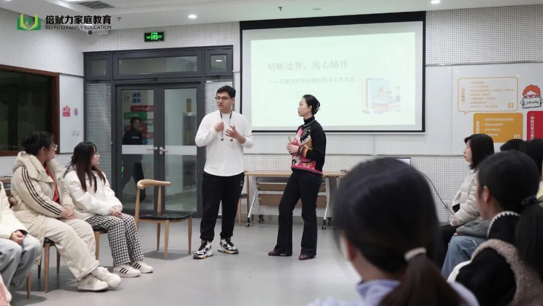 随后,倍赋力家庭教育督导专家潘子源老师针对志愿者们初次走进困境家庭普遍存在的担忧与困惑,如“能否被服务对象接纳”、“是否被服务对象信任”、“如何有效建立联系与沟通”等,进行了深入浅出的疏导与解答。