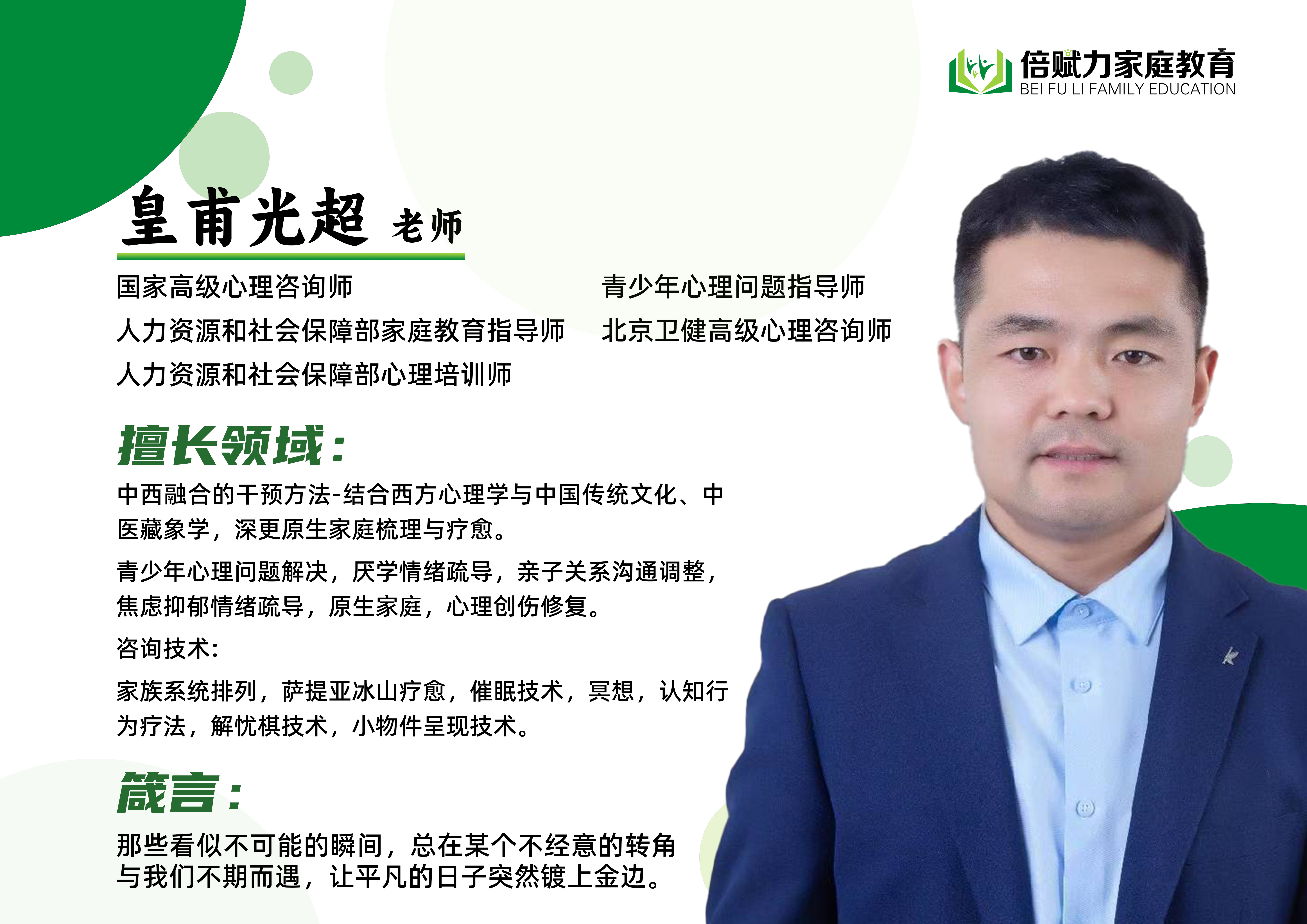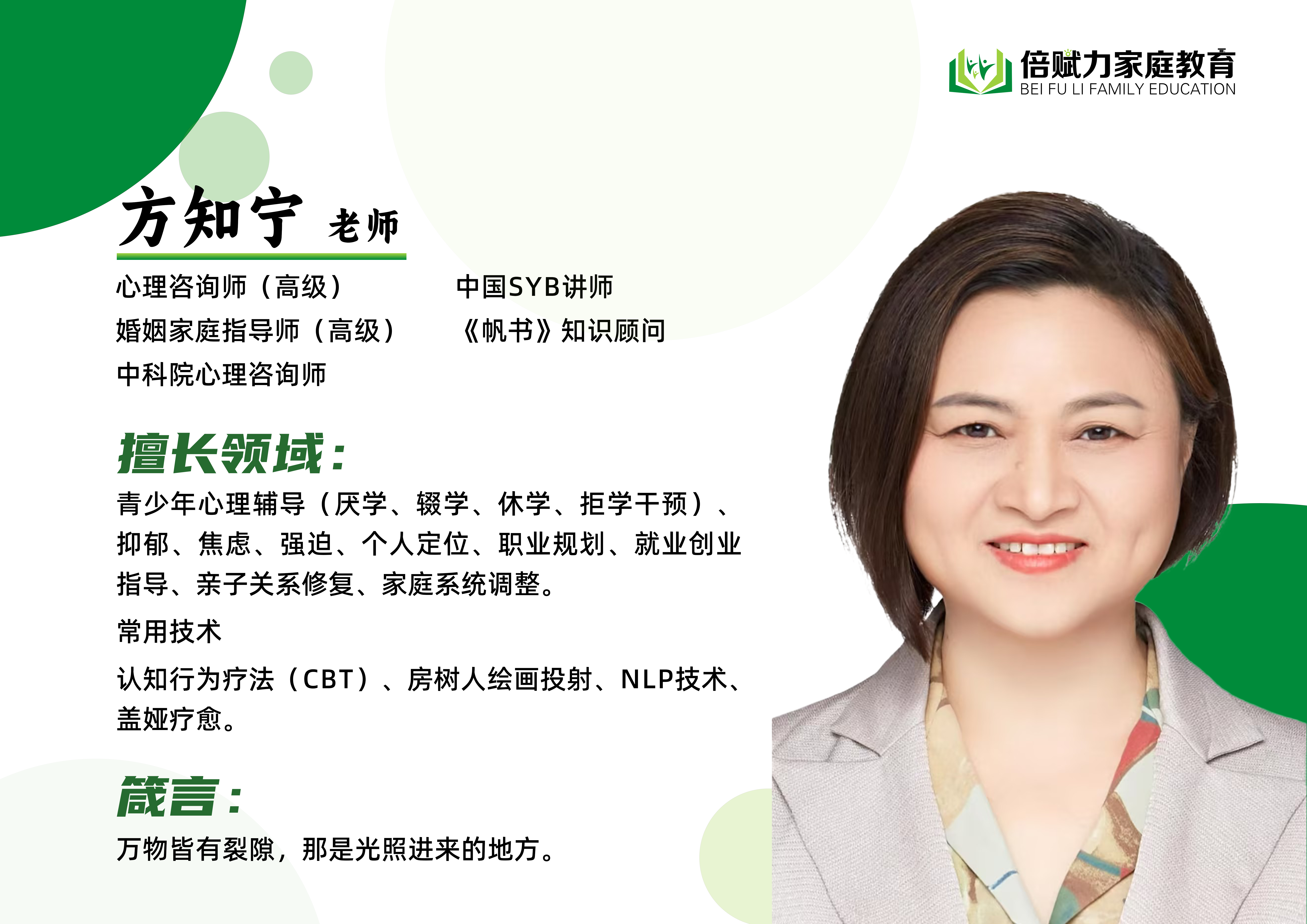 山东倍赋力教育咨询集团成立于2017年,是一家致力于为家长和孩子提供基于心理学的家庭教育培训和咨询的服务机构,构建良好的家庭关系、亲子关系,让每一个孩子都成为更好的自己。